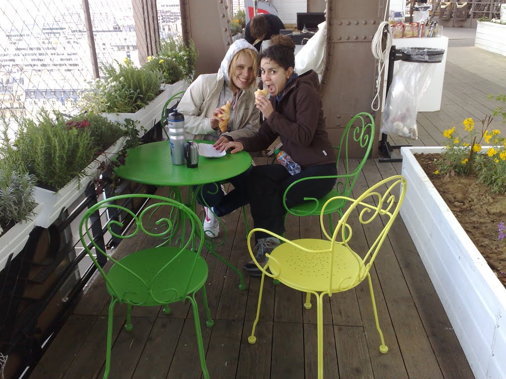 Lembro do quanto foi divertido a gente comendo croissant na torre Eiffel.